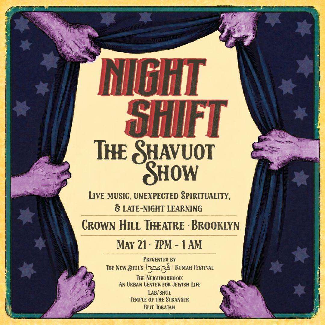 At Night Shift: The Shavuot Show, we’ll be staying up late with live music, immersive ritual, radical text study, sensational drag, and more! Shavuot is the Jewish holiday of revelation, often observed through late-night Torah study. This year, The New Shul, The Neighborhood, Temple of the Stranger, Beit Toratah, and friends invite you to come early and stay late for a mind-opening, community-building, heart-expanding experience of art, culture, and spirituality.